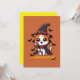 Hexenkatze, die Süßigkeiten mit einem lächelnden und fröhlichen Ausdruck trägt