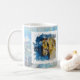 Caneca pintura "Cavalo" com fundo em manchas azuis Kaffeetasse