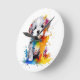 ¡Este perrito con estilo es el complemento perfecto para cualquier hogar! Con su aspecto parecido a un caniche y las vibrantes salpicaduras de pintura en amarillo, azul, rojo-naranja, amarillo y un poco de verde, ¡seguro que impresionará a cualquier amante de los animales y del arte!