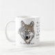 Darstellung des Wolfs mit Zitat von Kelly Overton: "Die Arbeit mit echten Wölfen war aufregend. Sie sind so phantastisch. Sie sind diese wunderschönen, brillanten Tiere und sie sind großartig, um mit ihnen zu arbeiten."