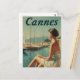 Dieses elegante Vintage-Poster zeichnet den zeitlosen Charme Cannes an der Côte d'Azur aus. Eine Frau in einem klassischen Kleid aus den 50er Jahren sitzt anmutig und blickt über den Hafen mit seinen eleganten Segelbooten. Das warme mediterrane Licht, die Pastelltöne und die Retrotexturen erinnern an das goldene Zeitalter der Riviera. Eine romantische und nostalgische Hommage an Stil und Küstensteleganz - ideal für Liebhaber Vintager Mode und französischer Meeresszenen.