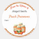 Ihre Zuhause gefertigten Konserven und Konfitüren verdienen ein einzigartiges und hübsches Label. Personalisieren Sie diese pfirsichfarbene Fruchtmarke mit Ihrem Namen und Produkt, um an Ihren Gläsern oder anderen Behältern anzubringen. Raum zu Hand schreiben Sie das Datum, an dem Sie Ihre Goodies erhalten, während Sie sie verwenden.