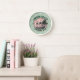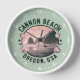 Die stilvolle Wanduhr bietet einen Retro-Stil mit rosa getöntem Wasser-Blick auf Cannon Beach, OR. Weiße Uhr auf pastellgrünem Hintergrund