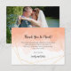 Stilvolle Dankkarten für Ihre Hochzeitsgäste! Sie bestehen aus einer eleganten geometrischen goldenen Linie, die an die klassische schwarze Typografie Hochzeit und ein Waschbecken von modernen cantaloupe orange Wasserfarbe von oben bis teilweise Abdeckung der Seite. Sie können Ihr Lieblingssalon leicht von Ihrem Hochzeitstag auf der Rückseite austauschen und so Ihren Gästen einen guten Sake geben. Der Text ist leicht personalisiert und Sie können auch die Textfarbe und die Schriftart ändern, wenn Sie über den Klick weitere Optionen anpassen möchten. Und wenn Sie nicht auf Handschriften bedacht sind, können Sie unsere handlichen individuellen Gästennamen- und Adressenaufkleber betrachten, die Sie in dieser Sammlung finden werden.
