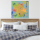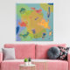 Vierkant canvas met afbeelding van dieren buiten, koe, kip en vogel in oranje, geel, groen en blauw