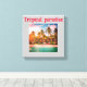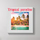 Das tropische Strandhotel aus einer Leinwand mit Bäumen und Pflanzen. Dies spiegelt das Wesen eines tropischen, ruhigen Urlaubserlebnisses wider.