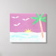 Diese gewickelte Leinwand ist mit einer Insel-Szene bei Sonnenuntergang unter einem magentafarbenen Himmel entworfen.