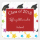 Ein großartiger Abschluss-Sticker, der mit schwarzen Kappen, leuchtend gelben, blauen, lila und grünen Sternen und Diplomen auf weißem Hintergrund einen schönen Hintergrund bietet. In der Mitte befindet sich ein rotes Textfeld mit dem Jahr, dem Namen und der Schule in weißem Text. Wenn Sie wählen, fügen Sie Text hinzu. Personalisieren Sie Ihre Abschluss-Aufkleber noch heute! Hintergrund: Kunstwerk erstellt von: Prettygrafik design (https://www.etsy.com/shop/Prettygrafikdesign)