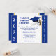 Abschluss Einladung, Cap & Diploma Thema, mit Klasse Jahr und "Abschlussfeier" in Royal Blue und Gold. Die Rückseite der Einladung enthält den Namen des Absolventen. Die Karte kann mit eigenen Bildern, Bildern, Bildern etc. personalisiert werden.
