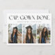 Modern and minimal graduation announcement photo card featuring 3 photos on the front and 1 on the back. The text at the top says "CAP. GOWN. DONE." Add the graduate's name, information, and message to personalize this card.