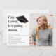 Dieses moderne Typografie-Design sagt: Cap, Gown. Es geht runter. Fügen Sie unten die Veranstaltungsdetails für Ihre Abschluss-Feier hinzu. Das Foto dient zur Veranschaulichung und kann in ein eigenes umgewandelt werden.