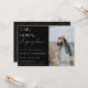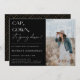 GAP, GOWN, es geht runter! Zeitgenössische Graduierungspartei Foto Einladung. Modernes Typografie-Design auf schwarzen Hintergründen mit Imitaten goldenen geometrischen Musterkabeln.
