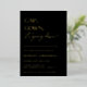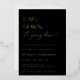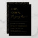 GAP, GOWN, es geht runter! Gold Foil Contemporary Graduation Party Einladung. Modernes Typografie-Design auf klassisch schwarzen Hintergründen mit Imitaten goldenen geometrischen Musterkabeln.