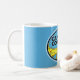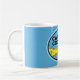 Ein Vintage-Reiseaufkleber von Cape Cod Massachusetts repurated auf eine Kaffee-Tasse. Dieser hier hat einen blauen Hintergrund. Wir haben noch eine auf einer weißen Tasse.