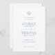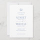 KABELJAU Hochzeit speichern Sie die Datumskarte. Features, Küstenblaue Typografie, seashell-Illustration Detail und Single-Foto auf der Rückseite.