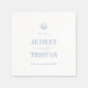 CAPE COD Coastal Blau, Papier Hochzeitsnapkins. Merkmale, hellblaue Typografie und Muschelbildnis.