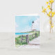 Diese Grußkarte zeigt ein Aquarellbild eines Leuchtturms an der Küste von Cape Cod Massachusetts.