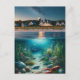 Postkarte mit einem wunderschönen Cape Cod Beach House Set inmitten des marinen Lebens in der Nacht.