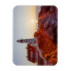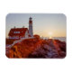 Dieses Foto zeichnet sich durch den Sonnenuntergang hinter dem Leuchtturm entlang der felsigen Küste aus. Ein weißer Zaun trennt den Leuchtturm vom Meer.
