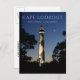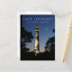 Das Cape Lookout Lighthouse, gerahmt von drei Silhouetten, erhebt sich unter einem Halbmond in Cape Lookout National Seashore, North Carolina.