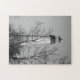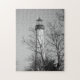 Das ist ein Schwarz-Weiß-Foto des Leuchtturms von Cape May. Es ist bekannt als Cape May Light und liegt im südlichen New Jersey im Cape May Point Staat Park. Der Leuchtturm liegt an der Spitze von South Jersey und dient als Leuchtturm für ankommende Schiffe. Dieses landschaftliche Foto wurde im Winter genommen, und der Leuchtturm kann durch die nackten Baumzweige im Vordergrund gesehen werden. Der Leuchtturm ist eine NJ-Sehenswürdigkeit, eine touristische Attraktion von Kap Mai und ein schönes Stück Architektur.