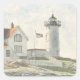 Aufkleber mit einem Gemälde von Cape Neddick Lighthouse, auch bekannt als Nubble Light, in York, Maine. Dies ist ein so ikonischer Leuchtturm, dass ein Foto davon als Beispiel für die Kultur der Erde auf der Raumsonde Voyager aufgenommen wurde. Kunstwerk: Wasserfarbe und Grafit auf Papier. Copyright Dominic A. White. Alle Rechte vorbehalten.