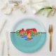 © Sunny Mars Designs - Cape Town Round Melamine Plate - This cool, custom, South Africa travel Dinner Plate features a colorful abstract cute fun cartoon vector illustration of Cape Town's Table Mountain, the ocean and a little yacht, in South African flag colors. This design is fully customizable. You can personalize it by adding your name or other text to it.