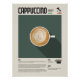 The Ultimate Cappuccino Coffee Artwork illustrating a perfect cup with aesthetic illustrations, barista measurements, and information.