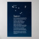 Capricorn Konstellation mit hellsten Stern und Eigenschaften auf einem erschreckten Hintergrund.