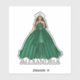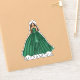 Capricorn-Göttin Mode Illustrationsticker Die Abbildung zeigt eine Frau in einem schönen grünen smaragdgrünen Ball-Kleid. Sie hat silberne Ziegenhorne und eine silberne Tiara. Dieses Erdschild ist für Frauen, die während der Capricorn-Saison geboren sind, ideal. Passen Sie diesen Aufkleber an, indem Sie einen Namen hinzufügen.