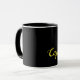 Die goldgelbe Schrift von Capricorn blühe auf schwarzem Hintergrund.