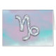 Eine Perlmuttmutter Capricorn Zodiac Symbol auf einer weichen Mischung aus pastellrosa und blauem Hintergrund. Ein elegantes Design für eine tolle Geburtstagsgeschenkidee für sie. Verwenden Sie den Link "Diesen Designer Gefragt", um uns mit Ihren speziellen Designanfragen oder für Hilfe bei Ihren Anpassungsbedürfnissen zu kontaktieren.
