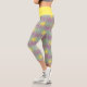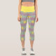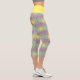 Capris in mittlerem Grün mit hellgelben Sternen und lila Wirbel. Die Taille ist gelb, kann aber ausgetauscht werden.