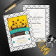 Dieses farbenfrohe und lustige Abschluss-Design vereint die feierliche Stimmung mit der Silhouette von Noten, die ihre Kappen in die Luft werfen und es ist ein fröhliches Farbschema. Ein Schwarz-Weiß-Karo und Aqua- und Goldakzente bilden den Hintergrund für Ihre Abschluss-Details. Fügen Sie Ihre Veranstaltungsinformationen auf der Rückseite mit der bereitgestellten Vorlage hinzu.