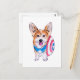Ein niedlicher Korgi, der ein Kostüm von Captain America trägt, handgemalt in der Smie-Technik mit Sumi Tinte und Aquarell auf Reispapier.