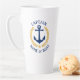 Eine Personalisierte 17oz Latte Tasse mit Captain Rank oder anderem Titel, Ihrem Bootsnamen, Familiennamen oder anderen gewünschten Text. Mit eigens dafür entworfenen nautischen Bootsankern, goldenen Blätter und Sternemblem. Macht ein großartiges Geschenk für jeden Anlass.