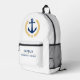 Ein speziell entworfener nautischer Bootsanker, goldene Lorbeerfische und ein Goldstar mit Captain Rank oder anderem Titel und Dein Personalisierter Name oder Boat Name in Regal Marineblau auf einem einheitlichen, weißen Rucksack. Macht ein großartiges Geschenk.