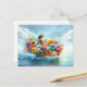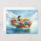 This delightful image, titled "Bee's Voyage," is a whimsical and cheerful children's illustration that radiates joy and adventure. It features a friendly bee with a captain's hat, steering a wooden boat overflowing with a vibrant assortment of flowers. The bee sails across a calm, glistening sea under a sunny sky, accompanied by a fluttering flag and a companion bee. The use of bright, joyful colors and the playful nature of the subject matter create an atmosphere of lighthearted exploration and wonder, perfect for inspiring stories and dreams in a child's imagination.