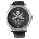 Avast, ihr Schmierer! Zieh mir Holz! Kapitän Vater, zeigen Sie Ihre scurvy Crew, der Chef mit der klassischen Piratenflagge: ein Schädel und Kreuzung der Schnittbrillen. Savvy?