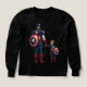 Eine berührende Abbildung, wie Captain Amerika mit seinem Mini-mir-Sohn Händchen hält, die beide in passenden patriotischen Uniformen und Schilden passen. Das kraftvolle Bild symbolisiert Liebe, Schutz und eine heroische Bindung zwischen Vater und Kind.