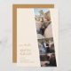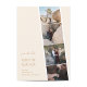 Mit der Einführung unserer faszinierenden "Capture Liebe" Wedding Save the Date Card, einer bezaubernden Mischung aus Nostalgie und zeitgenössischer Ästhetik in Foto. Dieses einzigartige Design verkörpert das Wesen Ihrer gemeinsamen Reise und lädt Liebhaber ein, ihre Kalender für Ihren besonderen Tag zu markieren. Der Hintergrund strahlt eine Vintage Anziehungskraft aus und erinnert an die klassischen Foto-Messestände, die wertvolle Erinnerungen enthalten. Moderne Elfenbein- und Goldtöne bilden das Fundament dieser trendigen Farbpalette, die Gefühle von Romantik und Zeitlosigkeit hervorruft. Diese Farbtöne verflechten sich anmutig und schaffen eine harmonische Kulisse, die den Hauptfokus der Karte unterstreicht. Im Vordergrund steht eine kunstvolle Anordnung Ihrer Lieblings-Verlobung-Fotos im Zentrum der Bühne. Jeder Rahmen hält einen gepflegten Augenblick in der Zeit fest und lädt die Gäste ein, an Ihrer freudigen Reise teilzunehmen. Der Schriftart, der den Text verbindet, verkörpert moderne Eleganz. Die wichtigsten Details, wie die Namen des Ehepaares und das Hochzeitsdatum, sind schön in einem raffinierten Serif-Schriftart geschrieben. Dies ergänzt kontrastvoll den Begleittext, der einen eleganten Kalligraphie-Schriftart verwendet. Die Kombination spiegelt nicht nur die Dualität Ihrer Liebe wider, sondern fügt dem Gesamtdesign auch eine Touch der Verfeinerung hinzu.