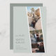 Mit der Einführung unserer faszinierenden "Capture Liebe" Wedding Save the Date Card, einer bezaubernden Mischung aus Nostalgie und zeitgenössischer Ästhetik in Foto. Dieses einzigartige Design verkörpert das Wesen Ihrer gemeinsamen Reise und lädt Liebhaber ein, ihre Kalender für Ihren besonderen Tag zu markieren. Der Hintergrund strahlt eine Vintage Anziehungskraft aus und erinnert an die klassischen Foto-Messestände, die wertvolle Erinnerungen enthalten. Moderne Töne von Hellgrün und dunklem Salbei bilden das Fundament dieser trendigen Farbpalette, die Gefühl von Romantik und Zeitlosigkeit hervorruft. Diese Farbtöne verflechten sich anmutig und schaffen eine harmonische Kulisse, die den Hauptfokus der Karte unterstreicht. Im Vordergrund steht eine kunstvolle Anordnung Ihrer Lieblings-Verlobung-Fotos im Zentrum der Bühne. Jeder Rahmen hält einen gepflegten Augenblick in der Zeit fest und lädt die Gäste ein, an Ihrer freudigen Reise teilzunehmen. Der Schriftart, der den Text verbindet, verkörpert moderne Eleganz. Die wichtigsten Details, wie die Namen des Ehepaares und das Hochzeitsdatum, sind schön in einem raffinierten Serif-Schriftart geschrieben. Dies ergänzt kontrastvoll den Begleittext, der einen eleganten Kalligraphie-Schriftart verwendet. Die Kombination spiegelt nicht nur die Dualität Ihrer Liebe wider, sondern fügt dem Gesamtdesign auch eine Touch der Verfeinerung hinzu.