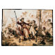 Der salzige Spray stich Edward Teach Augen, als die Morgendämmerung verblutete Krümel über die Küste von Carolina. Gone war die furchteinflößende Rache der Königin Anne, sein Stolz und sein Besitz. Nun, Blackbeard, wie er überall in der Karibik bekannt war, eroberte das niedere Abenteuer, eine undichte Kuh im Vergleich zu seinem früheren Ruhm. Unzufriedenheit simmerte unter seiner Crew, ein zerrissener Haufen behielt loyal durch Angst und schwindende Rum-Rationen. — Plötzlich brüllte der Blick und zerschmetterte die angespannte Stille. Aus dem Nebel kamen zwei Schiffe hervor, die zwar kleiner, aber geschmeidig sind, aber wie hungrige Haie auf sie herabtragen. Schwarzbart verflucht, erkennt die Farben der Royal Navy. Der Gouverneur Spotswood von Virginia hatte endlich seine Hunde geschickt. — Panik flimmerte über einige der Gesichter seiner Männer, aber Blackbeard brüllte eine Herausforderung, seine boomende Stimme schnitt durch die salzige Luft. Er riss sich an einem Pistolenbandolier fest, zündete langsame Streichhölzer an, um seine charakteristischen, in seinen Bart gewebten Sichten zu beleuchten, und brannte sein Glas, ein gezacktes Stahlmau. — Das Leadschiff, der Ranger, unter dem Kommando des jungen Lieutenant Maynard, löste einen Strom Kanonenfeuer aus. Die zersplitterten Holzfäller des Abenteuers stöhnten aus Protest. Der Schwarzbart verspätete Befehle, seine Crew kämpft, um das Feuer zurückzukehren. Rauchen erfüllte die Luft, erfüllte sich und erstickte. — Maynard, ein gerissener Gegner, lenkte den Ranger neben dem Abenteuer und packte Haken, die in verdorbenes Holz beißen. Der schwarze Bart, ein wütender Wirbelwind, führte das Attentat auf das gegnerische Deck. Pistolen bellten, Schnittbrillen prallten in einem tödlichen Ballett zusammen. Maynard, sein Gesicht geätzt von grimmiger Entschlossenheit, paramierte Blackbeards Schläge. Stahl sang gegen Stahl, Funken fliegen. — Die Schlacht wütete über die Decks, ein verzweifelter Kampf um das Überleben. Blut schluckte die Bretter, und die Moane der Verwundeten vermischten sich mit dem Kanonenbrüllen. Der Schwarzbart, ein entfesselter Dämon, kämpfte mit der Wut eines abgeriegelten Tieres. Er nahm einen Schnitt an den Arm, dann einen weiteren an sein Bein, schlich sich aber zurück, sein schwarzer Bart weinte mit Untreue. — Aber die Zahlen sagten. Maynards frische und disziplinierte Männer stießen die müden Piraten langsam zurück. Einer nach dem anderen fiel die Crew von Blackbeard. Ein glücklicher Schuss von Maynard weidete Blackbeards Wange und blendete ihn in einem Auge. Wütend lungerte er auf den jungen Offizier, seine Haut verschwimmen. Maynard duckte, und Blackbeards Klinge fand nur Luft. Der Schwung trug den Schwarzbart vorwärts, aus dem Gleichgewicht. - In diesem Augenblick sah Maynard seine Chance. Mit einem Anstieg an Adrenalin schluckte er ein, seine eigene Haut fand ihre Spur. Der Schwarzbart brüllte in Schmerzen, eine klaffende Wunde über seine Brust. Er stolperte zurück, sein Feuer löschte. Bevor er fallen konnte, brach Maynards Männer einen Pilzhagel aus. Der Schwarzbart zerbröckelte, eine riesige Eiche sprang endlich. — Die verbleibenden Piraten, ihr Anführer tot und hoffnungslos zerschmettert, kapituliert. Als die Sonne höher kletterte und ihr goldenes Licht auf eine Szene des Gemetzels warf, war eine neue Legende geboren. Der Schwarzbart, der Schrecken der Meere, war nicht mehr. Seine Gefangennahme, ein blutiger Beleg für das unerbittliche Streben nach Gerechtigkeit, hallte über die Wellen. - Maynard, sein Gesicht grimmig mit dem Sieg, untersuchte das Gemetzel. Sein Blick fiel auf die gefallene Gestalt von Blackbeard. Mit einem kalten Glanz in den Augen befahl er dem Piratenführer, den Kopf zu brechen. Die grauenhafte Aufgabe wurde getan, der Kopf gehalten aloft, eine grimmige Trophäe und eine deutliche Warnung. — Der kopflose Körper von Schwarzbart wurde ohne Zeremonie über Bord geworfen, verschluckt vom turnenden Meer. Aber die Legende hat es doch, dass etwas Außergewöhnliches passiert ist. Als der Körper das Wasser traf, schworen einige von Blackbards Crew, die an den dunklen Zauber glaubten, die Piraten zu flüstern, sie sahen sein kopfloses Leib zucken. Dann, mit einer Welle unnatürlicher Energie, Rose aufrecht. Einen Augenblick stand es dort, ein Widerspruch sogar im Tode, bevor er unter den Wellen zurücktauchte. Sie behaupteten, dass sein Körper, angetrieben durch einen unheiligen Pakt oder schiere Willenskraft, dreimal um das Schiff schwamm; die arcobantische Legion, ein Begriff, der von einigen Piraten benutzt wird, um die legendären neun Leben besonders schlechter Männer zu beschreiben, die angeblich vom Teufel selbst gewährt wurden. — Der Kopf des Schwarzbarts begann jedoch auf eine andere Reise. Sie wurde auf dem Bowsprit von Maynard's Schiff ausgestellt, ein schreckliches Sehen für alle. Er diente als Beweis für den Sieg des Lieutenants und als erschütternde Botschaft an alle, die es wagten, dem Pfad des Blackbeard zu folgen. — Geschichten schwirbelten um den Kopf von Blackbeard, nachdem er Virginia erreicht hatte. Einige behaupteten, es sei am Eingang des Hampton-Flusses auf einem Pol ausgestellt worden, eine grauenhafte Erinnerung für alle, die vorbeigefahren sind. Andere flüsterten von einem dunkleren Schicksal, dass der Schädel in eine makabre silberne Lochschüssel geformt wurde, die für immer das abscheuliche Grinsen des verstorbenen Piraten trug. — Gemalt 1920, die Capture of the Pirate Blackbeard in 1718, von Jean Leon Gerome Ferris. Dieses Werk ist in den Vereinigten Staaten öffentlich zugänglich, wie es vor dem 1. Januar 1929 veröffentlicht (oder beim US Copyright Office registriert) wurde.
