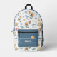 Ein bezauberndes Capybara Astronauten Muster bedruckter Rucksack mit individualisierbarem Namen - Niedliches und farbenfrohes, nahtloses Kindermuster mit bezaubernden Capybaras, Ballons, Planeten, Sternen und Teleskopen in süßer Aquarellfarbe. Dieses in weichen Pastellfarben mit spielerischen Pop dekorierte, unterhaltsame und skurrile Raumdesign ist perfekt für Jungs und Mädels.