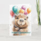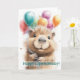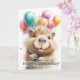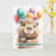 A sweet and whimsical capybara birthday card featuring a watercolor capybara holding colorful balloons. Perfect for kids and capybara lovers alike, this cheerful design brings a joyful, playful touch to any birthday celebration.