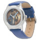 Kinderuhr aus Edelstahl mit blauem Lederarmband