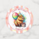 Adorable personalisiert capybara Thema Geburtstagsparty Konfetti mit Fotos, Alter und Name. Eine süße Wasserfarbe Capybara mit einem Ballon und Geburtstagsgeschenk in Rosa und Blau.