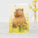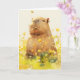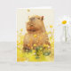 Diese bezaubernde Grußkarte verfügt über eine lächelnde Capybara, umgeben von einer Wiese mit hellgelben Wildblumen und einem kleinen Schmetterling, der spielerisch darüber schwingt. Die warmen, goldenen Farbtöne und der Aquarellstil verleihen der Illustration eine weiche, skurrile Touch, die sich perfekt für Naturliebhaber und Tierfreunde eignet. Die inhaltliche Ausdruckskraft der Capybara und die entspannte Pose bringen ein Gefühl der Ruhe und des Glücks, das die Schönheit eines ruhigen Naturerlebnisses erweckt. Ideal zum Geburtstag, zum Dank oder einfach nur zum Feiern, ist diese Karte ein schöner Weg, ein fröhliches und freundliches Bild zu teilen, das den Charme der Wildnis feiert.