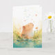 Diese verzauberte Capybara-Grußkarte erfasst einen ruhigen Moment einer Capybara, umgeben von lebhaften Blume, und blickt nach oben, während farbenfrohe Blütenblätter sanft in die Luft schweben. Die skurrile und friedliche Szene, die in einem sanften Aquarell-Stil gehalten ist, weckt ein Gefühl von Freude und Ruhe, perfekt für Natur- und Tierliebhaber. Diese Karte zelebriert die sanfte Schönheit der Capybaras in der Natur und ist ideal für jeden Anlass. Eine einmalige Wahl für diejenigen, die niedliche, verträumte Tierkunst schätzen und eine Touch der Ruhe und Magie verbreiten.