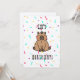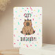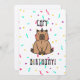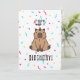 Personalisierte Niedliche Capybara mit Party die Geburtstagskarte mit dem Ausdruck: Happy Birthday! Kleine Capybara-Version und Nachricht auf der Rückseite. Capybara Illustration wird von @artbybiyan für Capybara Liebhaber erstellt.